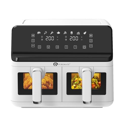 PureMate 9L Dual Air Fryer with Digital Display, Healthy Oil Free 2500W Air Fryer with 8 Preset, LED One Touch Screen, Timer & Adjustable Temperature Control (9L(4.5L+4.5L) Dual Basket)
