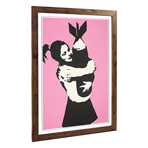Big Box Art Framed Print of Banksy Bomb Love Graffiti Design | Wall Art Picture | Home Decor for Kitchen, Living Room, Bedroom, Hallway, Walnut, A2 / 24.5x18 Inch / 62x45cm