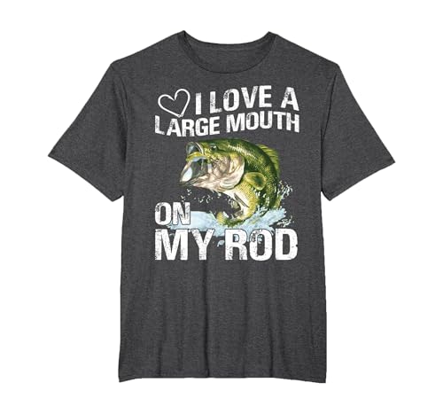 Funny Fishing Quote I Love a Large Mouth on My Rod T-Shirt, Men's Big and Tall, Dark Heather Grey, 6X Tall