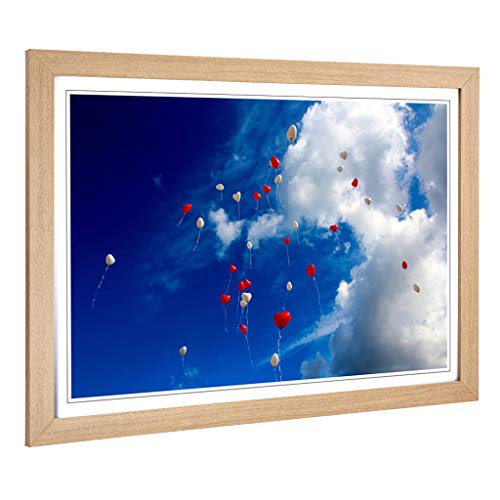 Big Box Art Framed Print of Red and White Love Heart Balloons Design | Wall Art Picture | Home Decor for Kitchen, Living Room, Bedroom, Hallway, Oak, A2 / 24.5x18 Inch / 62x45cm