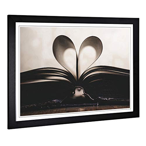 Big Box Art Framed Print of Paper Book Love Heart Design | Wall Art Picture | Home Decor for Kitchen, Living, Dining Room, Lounge, Bedroom, Hallway, Office, Black, A2 / 24.5x18 Inch / 62x45cm