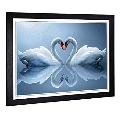 Big Box Art Framed Print of White Swan Love Heart Lake Design | Wall Art Picture | Home Decor for Kitchen, Living, Dining Room, Bedroom, Hallway, Office, Black, A2 / 24.5x18 Inch / 62x45cm