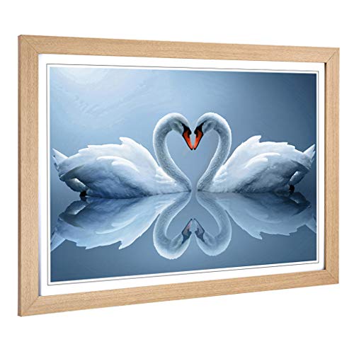 Big Box Art Framed Print of White Swan Love Heart Lake Design | Wall Art Picture | Home Decor for Kitchen, Living, Dining Room, Bedroom, Hallway, Office, Oak, A2 / 24.5x18 Inch / 62x45cm
