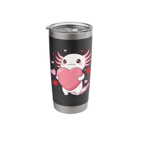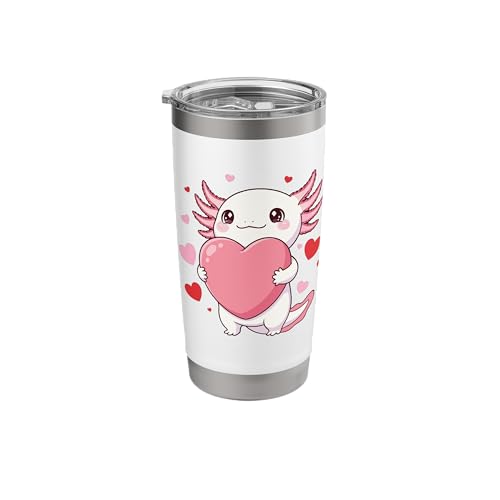 Adorable Kawaii Axolotl Holding A Big Pink Love Heart Stainless Steel Insulated Tumbler