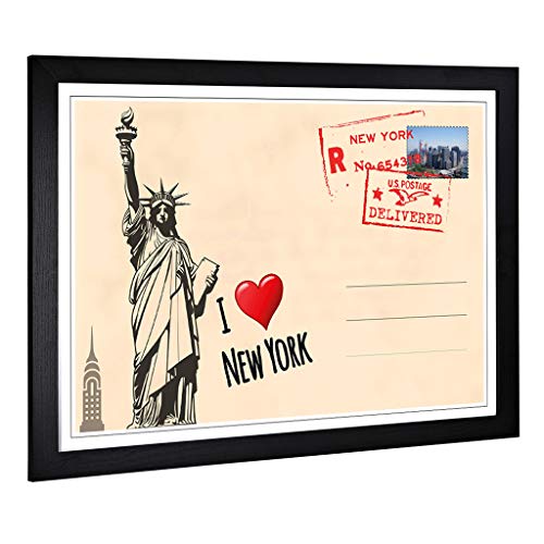 Big Box Art Framed Print of I Love New York City Postcard Design | Wall Art Picture | Home Decor for Kitchen, Living, Dining Room, Bedroom, Hallway, Office, Black, A2 / 24.5x18 Inch / 62x45cm