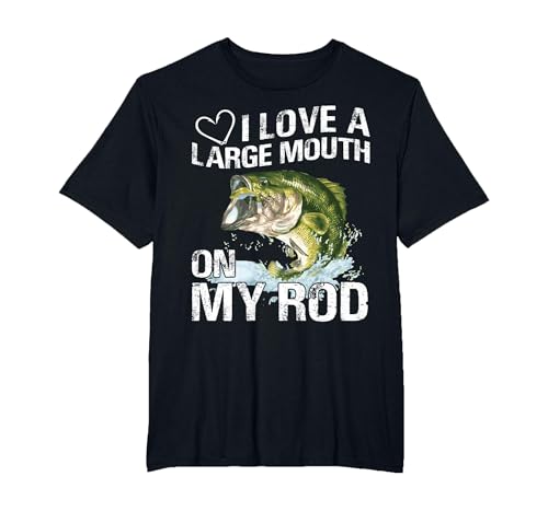 Funny Fishing Quote I Love a Large Mouth on My Rod T-Shirt, Men's Big and Tall, Black, 2X Tall