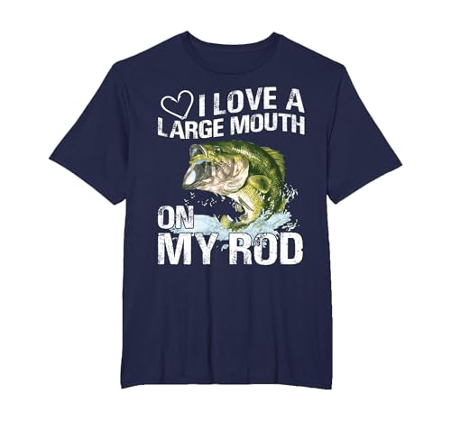 Funny Fishing Quote I Love a Large Mouth on My Rod T-Shirt, Men's Big and Tall, Navy Blue, 6X Tall