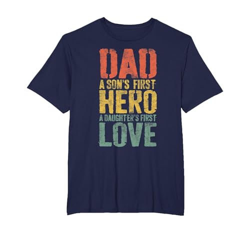 Dad A Sons First Hero A Daughters First Love Shirt Men Daddy T-Shirt, Men's Big and Tall, Navy Blue, 5X Tall