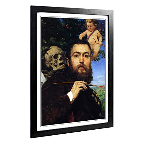 Big Box Art Framed Print of Hans Thoma Self Portrait with Love and Death Design | Wall Art Picture | Home Decor for Kitchen, Living Room, Bedroom, Hallway, Black, A2 / 24.5x18 Inch / 62x45cm
