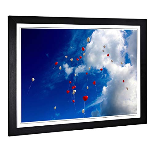 Big Box Art Framed Print of Red and White Love Heart Balloons Design | Wall Art Picture | Home Decor for Kitchen, Living Room, Bedroom, Hallway, Black, A2 / 24.5x18 Inch / 62x45cm