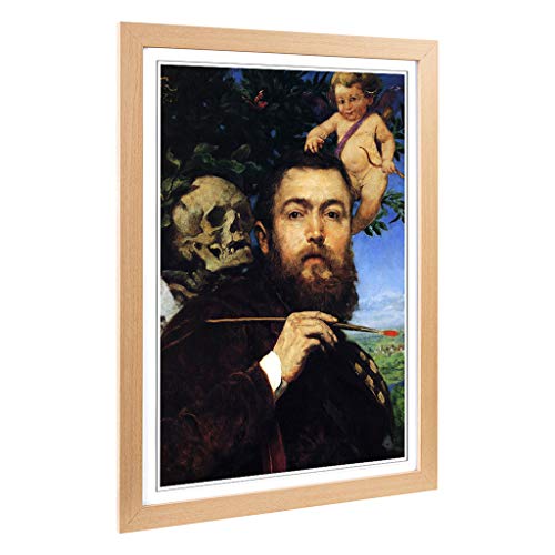 Big Box Art Framed Print of Hans Thoma Self Portrait with Love and Death Design | Wall Art Picture | Home Decor for Kitchen, Living Room, Bedroom, Hallway, Oak, A2 / 24.5x18 Inch / 62x45cm