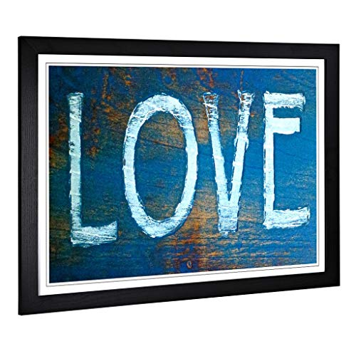 Big Box Art Framed Print of Wooden Love Sign Design | Wall Art Picture | Home Decor for Kitchen, Living, Dining Room, Lounge, Bedroom, Hallway, Office, Black, A2 / 24.5x18 Inch / 62x45cm