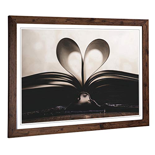 Big Box Art Framed Print of Paper Book Love Heart Design | Wall Art Picture | Home Decor for Kitchen, Living, Dining Room, Lounge, Bedroom, Hallway, Office, Walnut, A2 / 24.5x18 Inch / 62x45cm