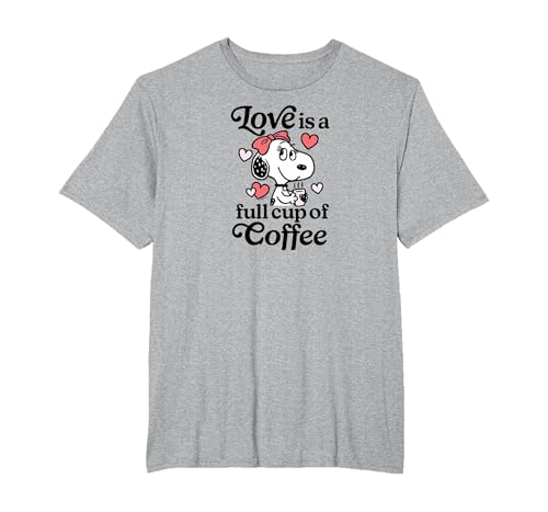 Peanuts - Belle Love is A Full Cup of Coffee with Hearts T-Shirt, Men's Big and Tall, Heather Grey, 6X Tall