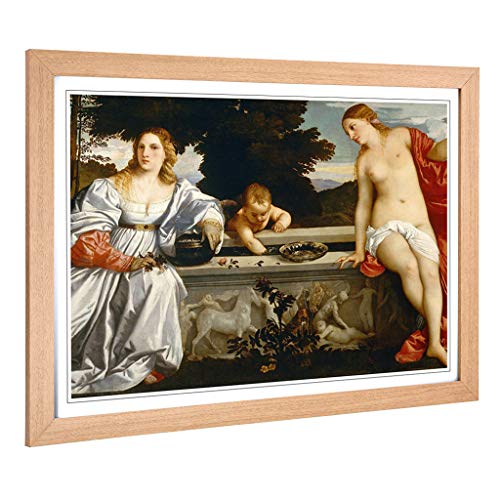 Big Box Art Framed Print of Titian Sacred and Profane Love Design | Wall Art Picture | Home Decor for Kitchen, Living, Dining Room, Bedroom, Hallway, Office, Oak, A2 / 24.5x18 Inch / 62x45cm