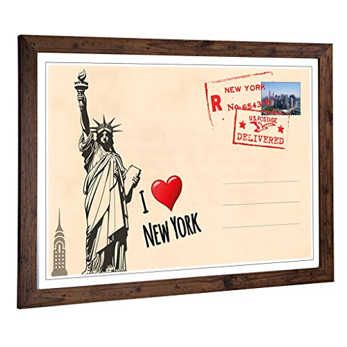 Big Box Art Framed Print of I Love New York City Postcard Design | Wall Art Picture | Home Decor for Kitchen, Living, Dining Room, Bedroom, Hallway, Office, Walnut, A2 / 24.5x18 Inch / 62x45cm