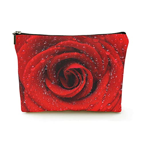 Premium Makeup Bag Women Linen Travel Cosmetic Bags,a Big red Rose, Durable Cosmetic Case