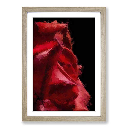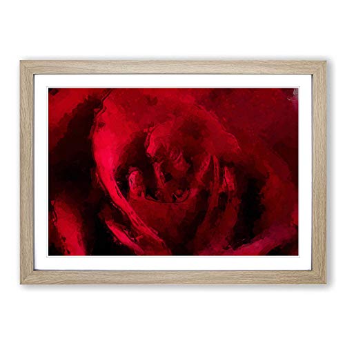 Big Box Art The Beauty of a Red Rose in Abstract Framed Wall Art Picture Print Ready to Hang, Oak A2 (62 x 45 cm)