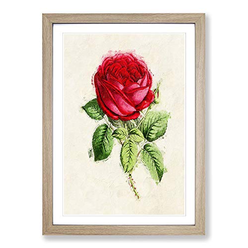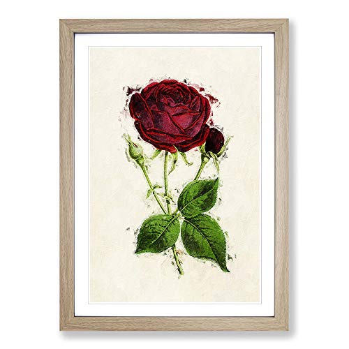 Big Box Art Illustration of a Red Rose Framed Wall Art Picture Print Ready to Hang, Oak A2 (62 x 45 cm)