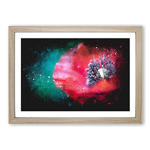 Big Box Art Eye of a Red Poppy Flower Paint Splash Framed Wall Art Picture Print Ready to Hang, Oak A2 (62 x 45 cm)