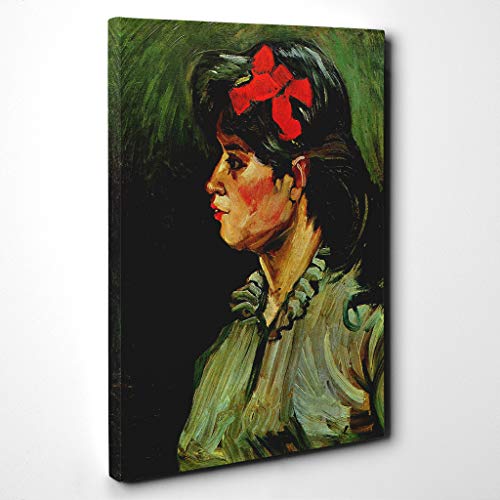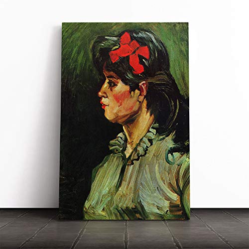 Big Box Art Canvas Print Wall Art Vincent Van Gogh Woman with a Red Ribbon | Mounted & Stretched Box Frame Picture | Home Decor for Kitchen, Living Room, Bedroom, Hallway, Multi-Colour, 20x14 Inch