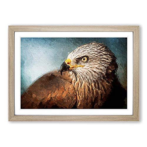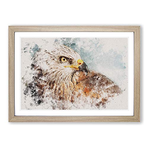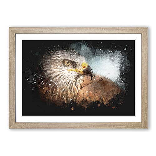 Big Box Art Portrait of a Red Kite Bird Watercolour Framed Wall Art Picture Print Ready to Hang, Oak A2 (62 x 45 cm)