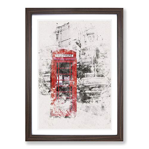 Big Box Art A Red Telephone Box Watercolour Framed Wall Art Picture Print Ready to Hang, Walnut A2 (62 x 45 cm)