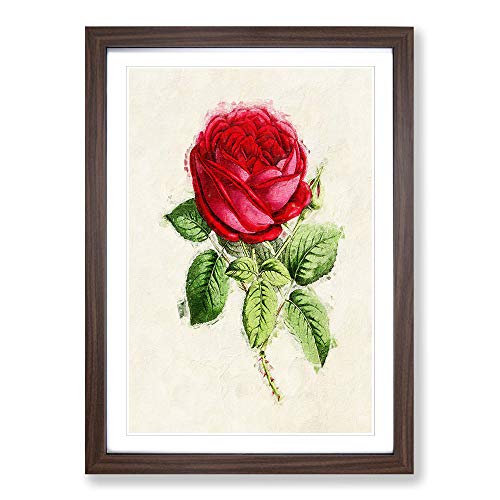 Big Box Art Illustration of a Red Rose Framed Wall Art Picture Print Ready to Hang, Walnut A2 (62 x 45 cm)