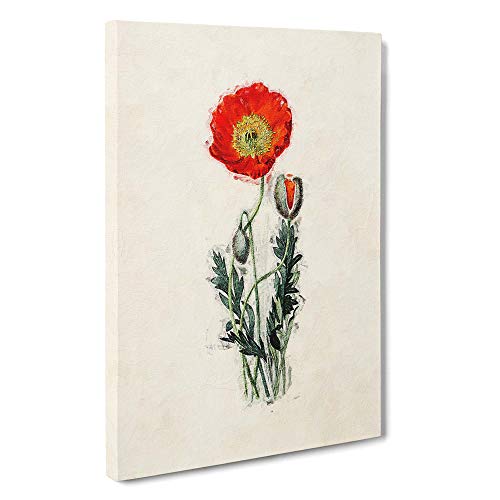 Big Box Art Illustration of a Poppy Flower Canvas Wall Art Framed Picture Print, 30 x 20 Inch (76 x 50 cm), White, Brown, Green, Red