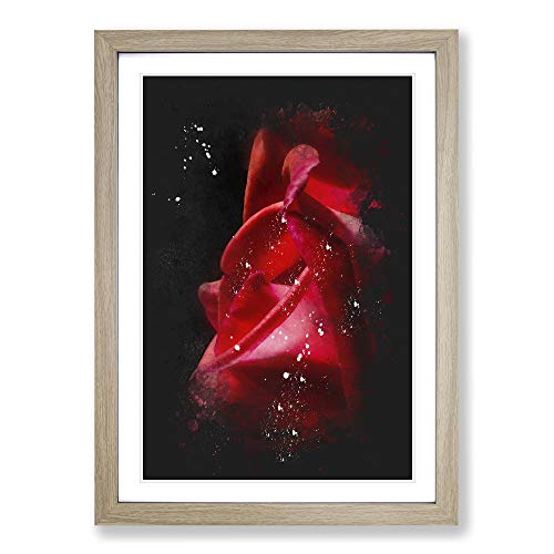 Big Box Art Petals of a Red Rose Paint Splash Framed Wall Art Picture Print Ready to Hang, Oak A2 (62 x 45 cm)