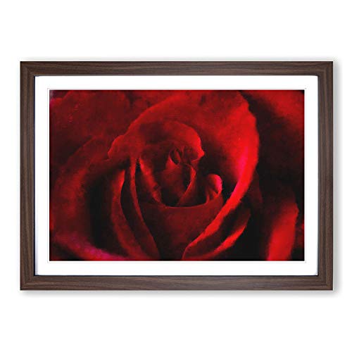 Big Box Art The Beauty of a Red Rose Painting Framed Wall Art Picture Print Ready to Hang, Walnut A2 (62 x 45 cm)