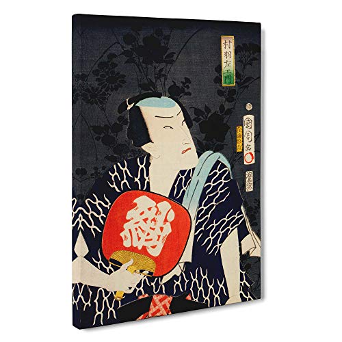 Big Box Art Man with a Fan by Toyohara Kunichika Painting Canvas Wall Art Framed Picture Print, 30 x 20 Inch (76 x 50 cm), Black, Grey, Red, Cream