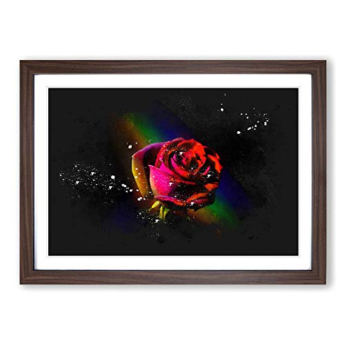 Big Box Art Rainbow Upon a Red Rose Paint Splash Framed Wall Art Picture Print Ready to Hang, Walnut A2 (62 x 45 cm)