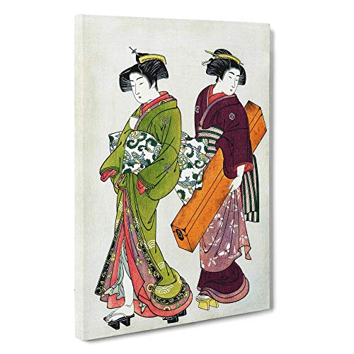Big Box Art Geisha with a Maid by Kitao Shigemasa Painting Canvas Wall Art Framed Picture Print, 30 x 20 Inch (76 x 50 cm), White, Red, Green, Brown