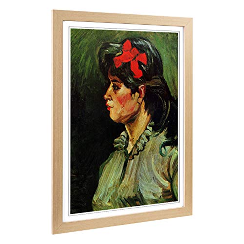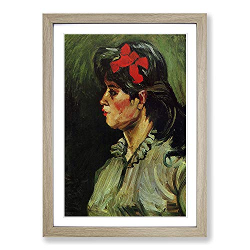 Big Box Art Vincent Van Gogh Woman with a Red Ribbon Framed Wall Art Picture Print Ready to Hang, Oak A2 (62 x 45 cm)