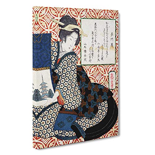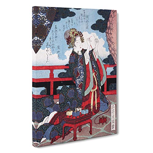 Big Box Art Lady with a Scroll by Yashima Gakutei Painting Canvas Wall Art Framed Picture Print, 30 x 20 Inch (76 x 50 cm), Beige, Black, Blue, Grey, Red
