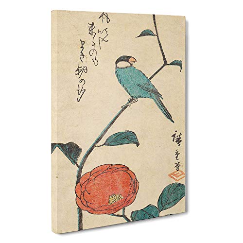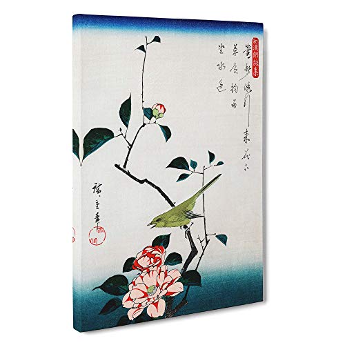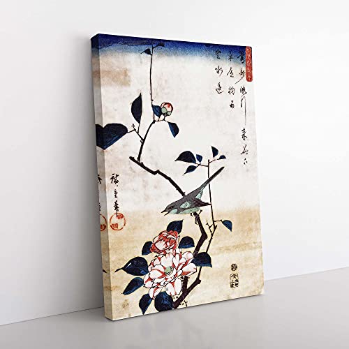 Big Box Art Camellia & a Nightingale by Utagawa Hiroshige Painting Canvas Wall Art Framed Picture Print, 30 x 20 Inch (76 x 50 cm), White, Black, Grey, Blue, Red