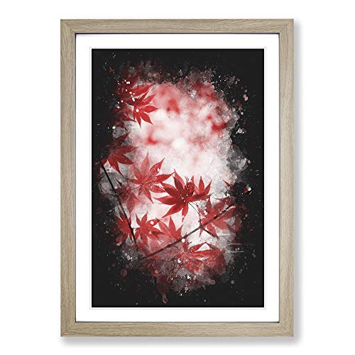 Big Box Art Red Leaves of a Maple Tree Paint Splash Framed Wall Art Picture Print Ready to Hang, Oak A2 (62 x 45 cm)