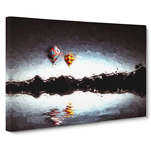 Big Box Art Hot Air Balloons Above a Lake in Abstract Canvas Wall Art Framed Picture Print, 30 x 20 Inch (76 x 50 cm), Red, White, Black, Grey