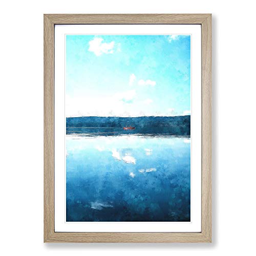 Big Box Art Red Kayak on a Lake in Sweden Painting Framed Wall Art Picture Print Ready to Hang, Oak A2 (62 x 45 cm)