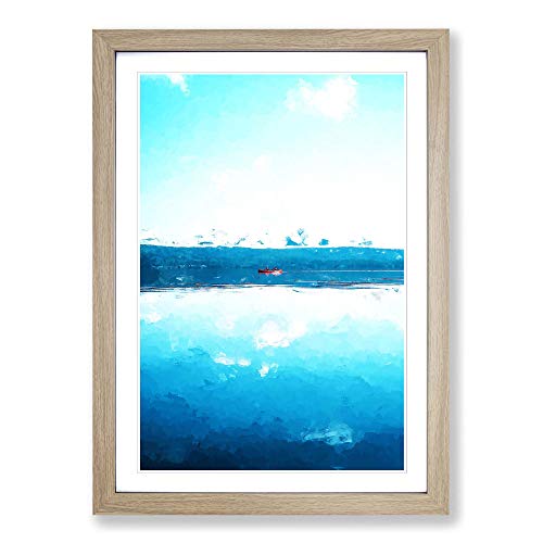 Big Box Art Red Kayak on a Lake in Sweden in Abstract Framed Wall Art Picture Print Ready to Hang, Oak A2 (62 x 45 cm)