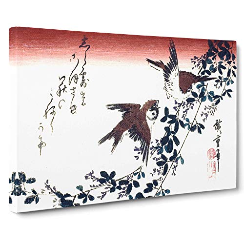 Big Box Art Sparrows on a Bush Clover by Utagawa Hiroshige Painting Canvas Wall Art Framed Picture Print, 30 x 20 Inch (76 x 50 cm), White, Red, Grey, Blue, Brown