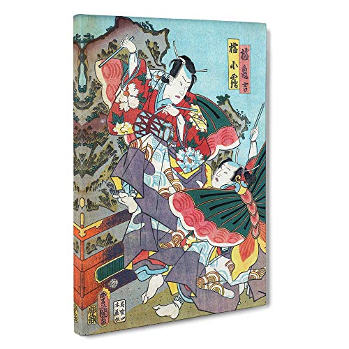 Big Box Art Ichikawa Yaozo III with a Lady by Torii Kiyonaga Painting Canvas Wall Art Framed Picture Print, 30 x 20 Inch (76 x 50 cm), Beige, Grey, Yellow, Brown, Red