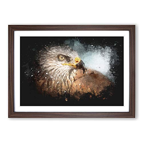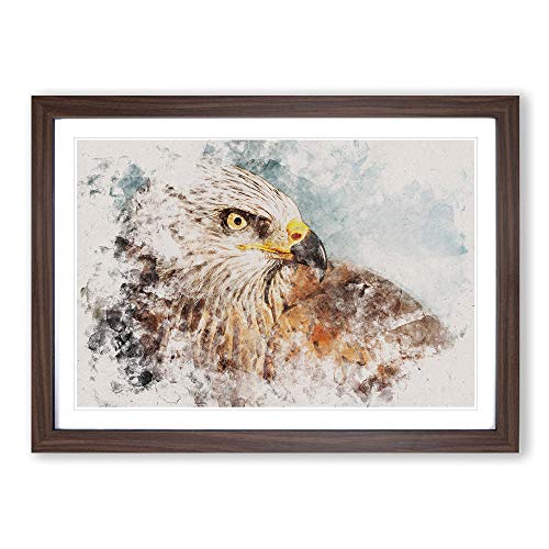 Big Box Art Portrait of a Red Kite Bird Watercolour Framed Wall Art Picture Print Ready to Hang, Walnut A2 (62 x 45 cm)