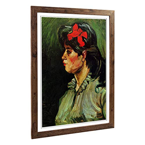 Big Box Art Vincent Van Gogh Woman with a Red Ribbon Framed Wall Art Picture Print Ready to Hang, Walnut A2 (62 x 45 cm)