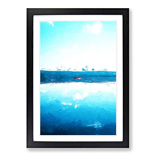 Big Box Art Red Kayak on a Lake in Sweden in Abstract Framed Wall Art Picture Print Ready to Hang, Black A2 (62 x 45 cm)