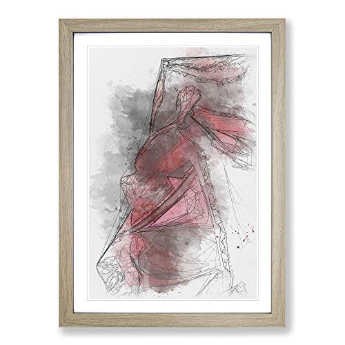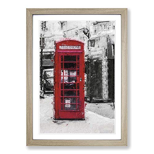 Big Box Art A Red Telephone Box in Abstract Framed Wall Art Picture Print Ready to Hang, Oak A2 (62 x 45 cm)