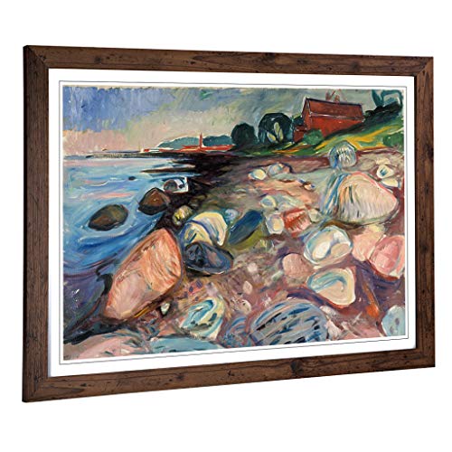 Big Box Art Framed Print of Edvard Munch The Shore with a Red House Design | Wall Art Picture | Home Decor for Kitchen, Living Room, Bedroom, Hallway, Walnut, A2 / 24.5x18 Inch / 62x45cm