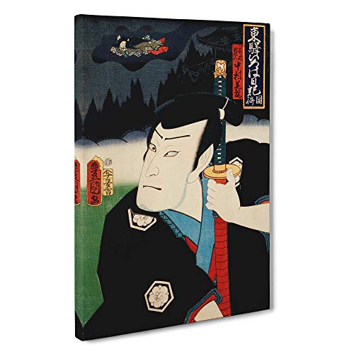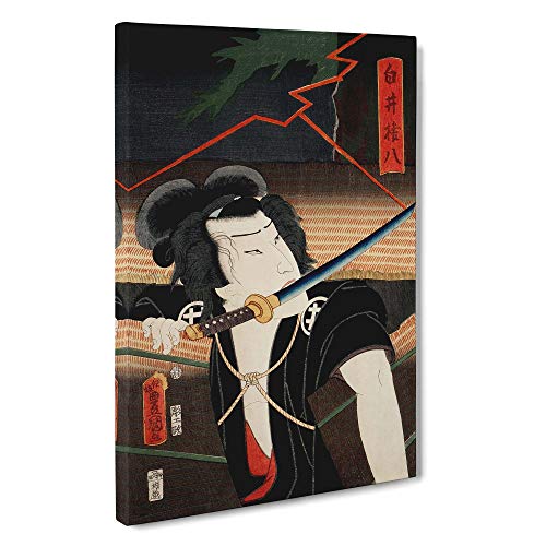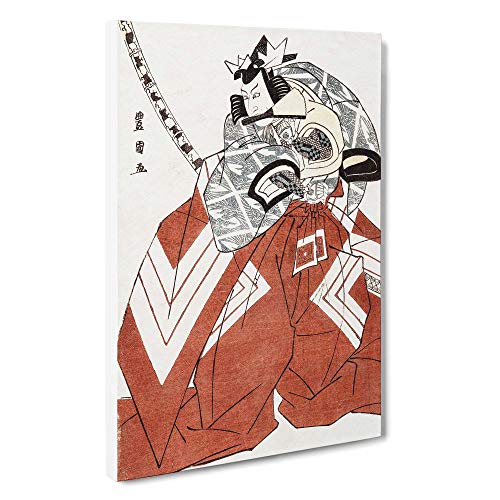 Big Box Art Male with a Samurai Sword by Utagawa Toyokuni Painting Canvas Wall Art Framed Picture Print, 30 x 20 Inch (76 x 50 cm), White, Red, Grey, Cream, Black