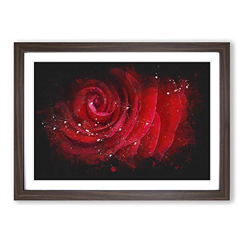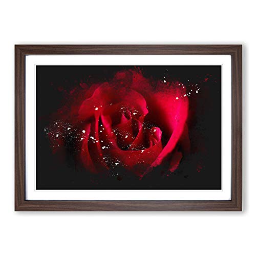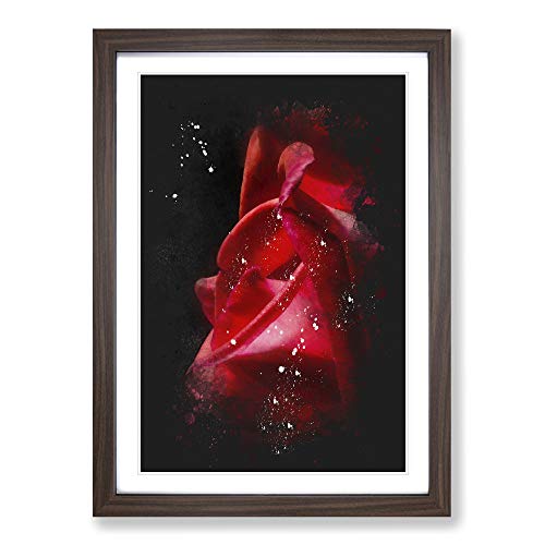 Big Box Art The Beauty of a Red Rose Paint Splash Framed Wall Art Picture Print Ready to Hang, Walnut A2 (62 x 45 cm)